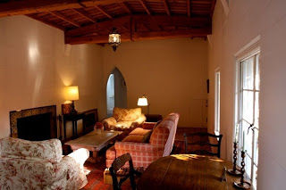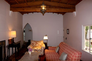 As I wrote in my first blog post about my tour of the home, I was immediately struck by the original open ceilings in the living room. The vaulted ceiling consists entirely of wooden beams and planks. While the overall design of the ceiling is basic, I found myself staring up for extended periods of time, just mesmerized by the beauty and naturalness of the original wood from the time when Marilyn lived there. I was surprised as the room was much smaller than I thought it would be. While somewhat long, it’s very narrow. Though I’d seen pictures of the living room, it is really hard to tell just how narrow it is. Additional photos below give a better view of the size of the room. Incredibly, the tiles Marilyn selected in Mexico still surround the fireplace.