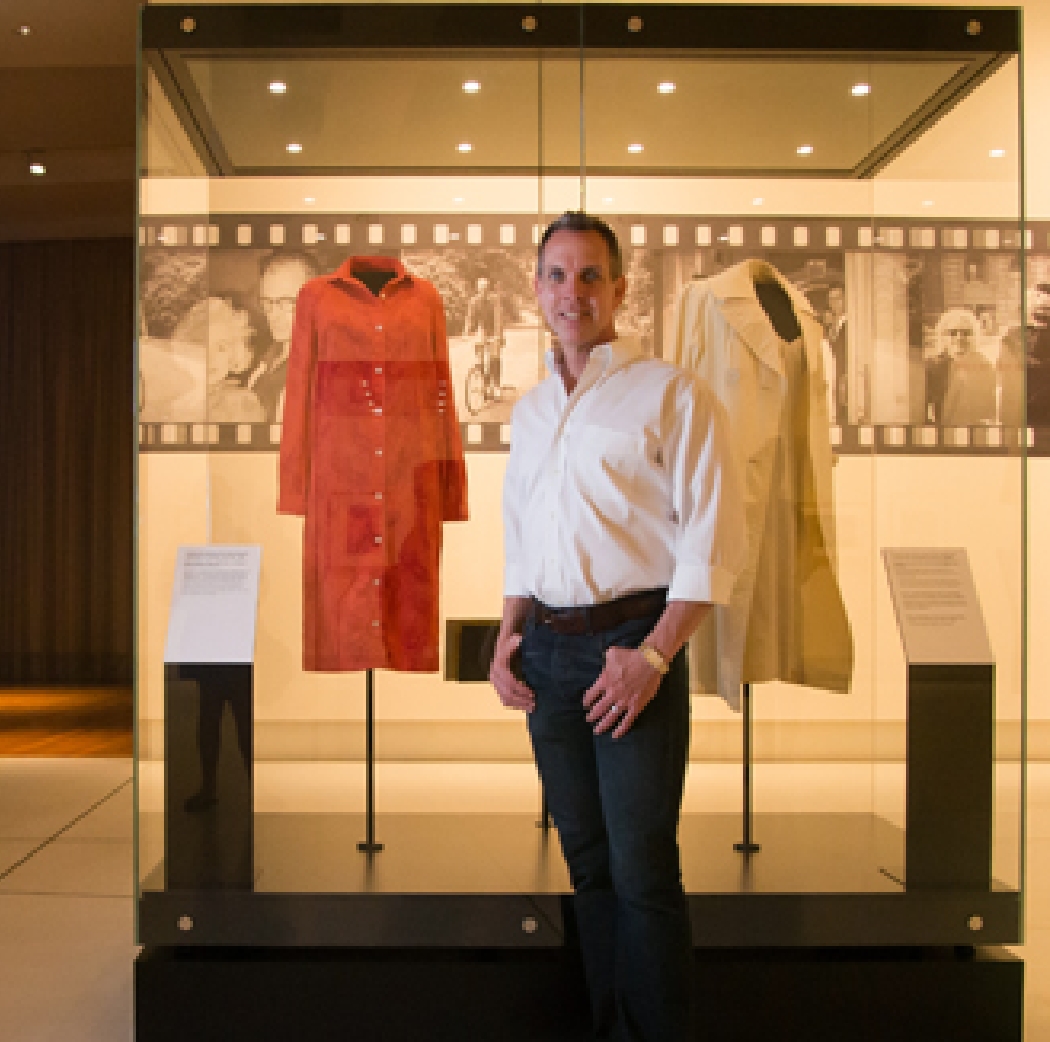 Scott with pieces from his collection on exhibit at Bendigo Art Gallery, Australia, 2016.