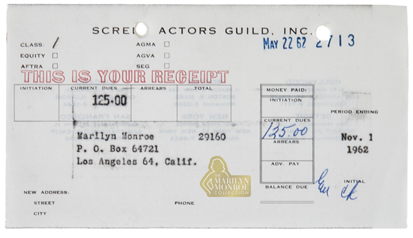 Professional Union Record from Marilyn Monroe’s Personal Files, 1962
