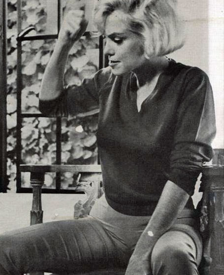 But when you’re famous you kind of run into human nature in a raw kind of way. It stirs up envy, fame does. People you run into feel that, well, who is she who does she think she is, Marilyn Monroe? They feel fame gives them some kind of privilege to walk up to you and say anything to you, you know, of any kind of nature and it won’t hurt your feelings. Like it’s happening to your clothing. One time here I am looking for a home to buy and I stopped at this place. A man came out and was very pleasant and cheerful, and said, “Oh, just a moment, I want my wife to meet you.” Well, she came out and said, “Will you please get off the premises?” You’re always running into peoples unconscious. Let’s take some actors or directors. Usually they don’t say it to me, they say it to the newspapers because that’s a bigger play. You know, if they’re only insulting me to my face that doesn’t make a big enough play because all I have to say is, “See you around, like never.” But if it’s in the newspapers, it’s coast to coast and all around the world. I don’t understand why people aren’t a little more generous with each other. I don’t like to say this, but I’m afraid there is alot of envy in this business. The only thing I can do is stop and think, “I’m all right but I’m not so sure about them!” For instance, you’ve read there was some actor that once said that kissing me was like kissing Hitler. Well, I think that’s his problem. If I have to do intimate love scenes with somebody who really has these kinds of feelings toward me, then my fantasy can come into play. In other words, out with him, in with my fantasy. He was never there.