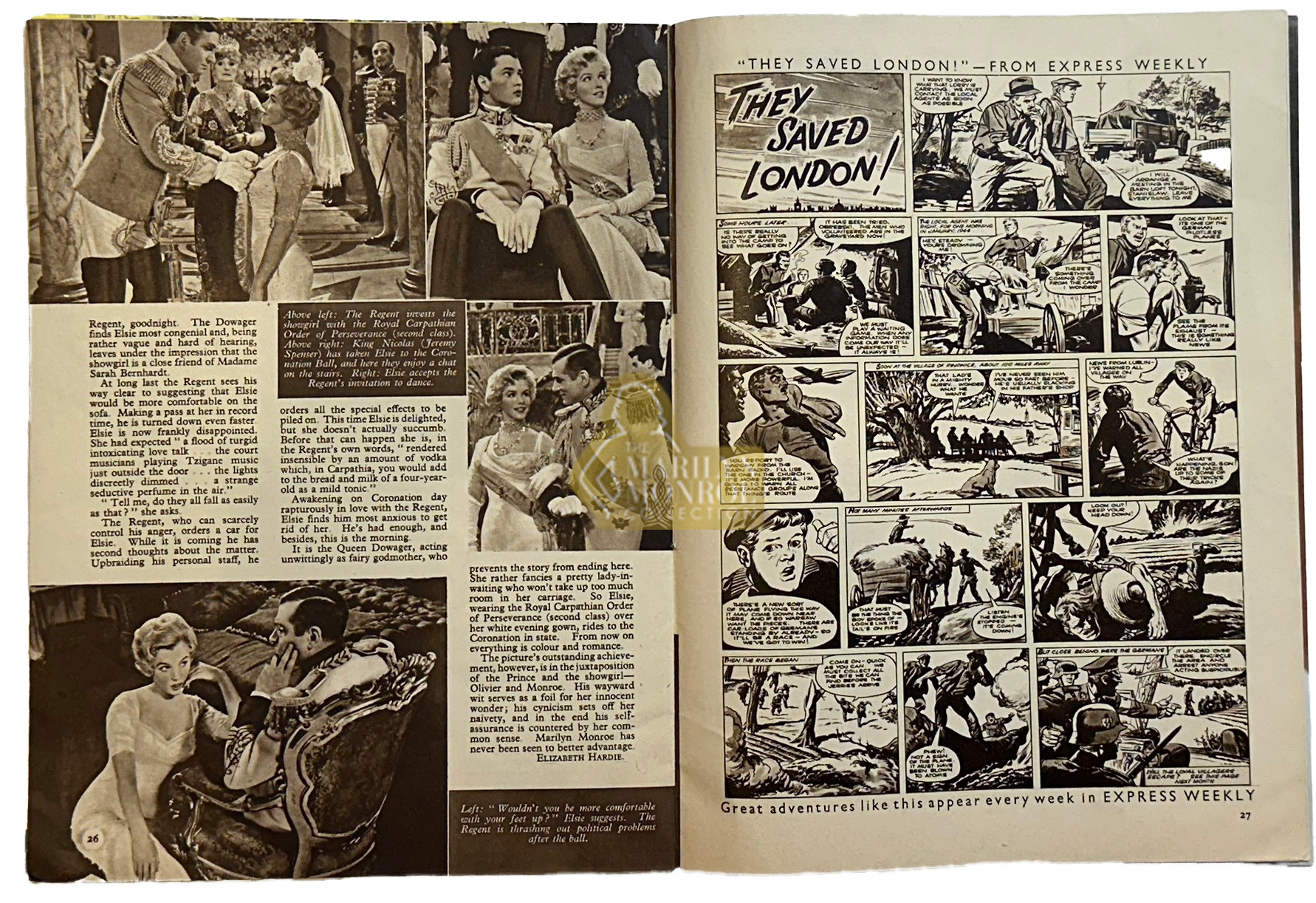 This original October 1957 issue of ABC Film Review magazine was retained among Marilyn Monroe’s personal possessions. Published in the United Kingdom, the magazine features Monroe on the cover and includes a multi page illustrated feature on The Prince and the Showgirl, the film she produced and starred in opposite Laurence Olivier.