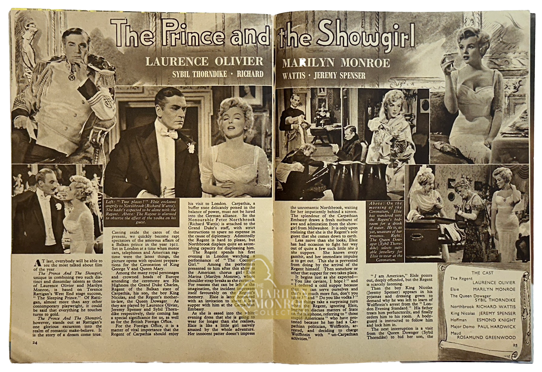 This original October 1957 issue of ABC Film Review magazine was retained among Marilyn Monroe’s personal possessions. Published in the United Kingdom, the magazine features Monroe on the cover and includes a multi page illustrated feature on The Prince and the Showgirl, the film she produced and starred in opposite Laurence Olivier.