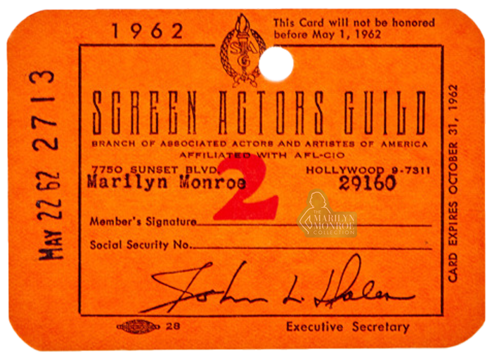- Marilyn Monroe’s Final Screen Actors Guild Membership Card, 1962