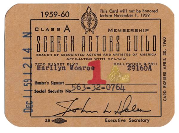 - Marilyn Monroe’s Personal Screen Actors Guild Membership Card, 1959-60