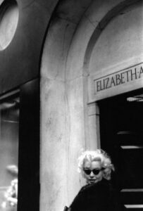On a mild mid-morning…I was walking towards the Gladstone and as I arrived at the entrance I came upon a teenager standing outside with an 8-mm camera aimed directly at the hotel’s revolving door, which was already in motion. Marilyn came awhirl through the door and literally performed a 360-degree turn for his home-movie camera. She was dressed in an elegant black suit with a fur collar, her lustrous hair shoulder length, and was fully made up. Dazzling! She was about to walk from 52nd Street and Lexington Avenue over to the Fifth Avenue beauty salon of Elizabeth Arden. So I walked side by side with her; naturally, to the utter frustration of this kid who was walking backwards with his movie camera pointed at us, because I was now unavoidably in all of his wonderful footage of Marilyn. In fact, although I sought him out over the following years, he never allowed me to see the candid film he took of Marilyn and me walking across town that day.
