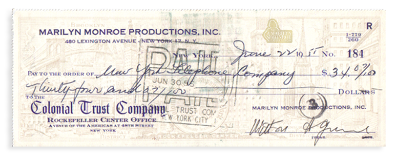 What stands out is their clarity. They place Monroe within an identifiable administrative system rather than within retrospective interpretation. Preserved with the corresponding payment check, they form a straightforward record of how communication and coordination were managed during a defining transition in her career.