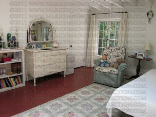 Below are photos of the bedroom as it looks today. Note that the bedroom door, bathroom door and closet door are the same actual doors that were in the room when Marilyn owned the home.
