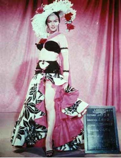 There’s No Business Like Show Business (20th Century-Fox, 1954) Marilyn Monroe black, white and pink, tropical-print “Heat wave” dress and hat by Travilla.