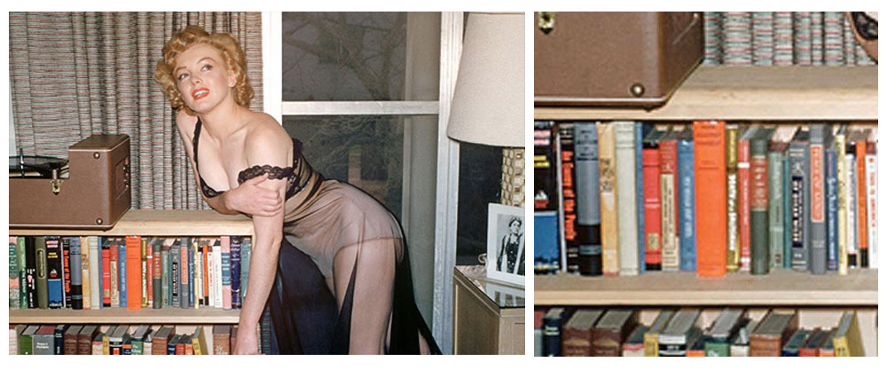 On a bookcase shelf rested an unpublished photo of Marilyn at the Actors Studio in 1955.