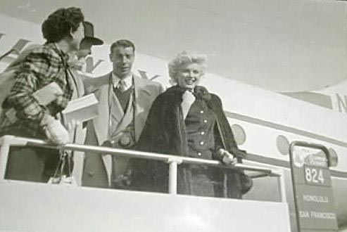 February of 1954, when she and Joe were returning from Japan at the end of their honeymoon. Note in the photos below the absence of a white fur collar on the suit.