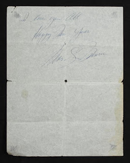 Description: A letter to the men of the Thule Air Base in Greenland, handwritten and signed by Marilyn Monroe. The two-page letter expresses Monroe’s disappointment at not being able to come to Greenland to celebrate New Year’s as she had planned in 1954. Monroe could not attend because of illness and was replaced for the USO performance by Anita Ekberg. Monroe ends her letter, “I think your [sic] the best men in the world. I love you all. Happy New Year. Marilyn Monroe.” 11 by 8 1/2 inches