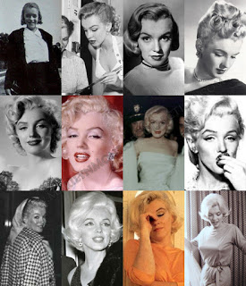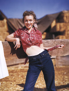 Interestingly, again, the famous widow’s peak, absent from the “porn star” is clearly visible in the photo below, taken by Tom Kelley in 1949.