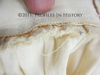The photo below shows the inside of the Reynolds costume, specifically the fabrics of the skirt, which are irregular and unfinished, likely a result of the alterations made to shorten the skirt. This photo of the inside of the Reynolds dress was provided directly by Profiles in History for this story.