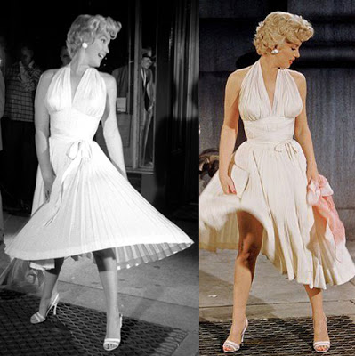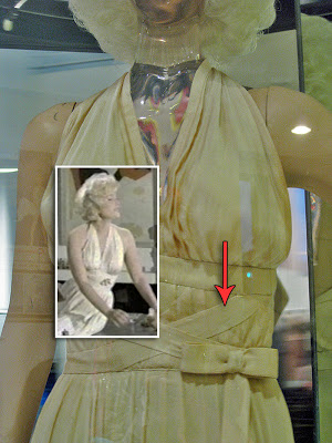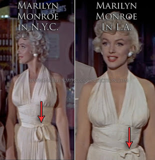 The Seven Year Itch, and the Debbie Reynolds owned Monroe costume that recently sold at the Profiles in History auction. The issues I referenced included variances in the belt and bow, the hem, the length and fullness of the skirt, and most notably the pleating variances between the Reynolds dress and the dress worn by Monroe.