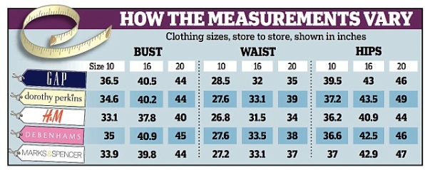 Note that the “plus sized” chart in the second example doesn’t reflect Marilyn Monroe’s measurements for bust, waist and hips.
