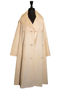 Marilyn wore this overcoat as she exited Polyclinic Hospital on July 11, 1961, following gallbladder surgery. Photos from that day show she has slimmed down and appears to be near her average weight. This coat hangs loosely around her shoulders as she exits the hospital and makes her way to a waiting limousine.