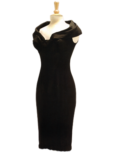 Marilyn wore this black silk cocktail dress to a 1959 event honoring husband Arthur Miller. The dress was hand-tailored for Marilyn, and it’s one of a kind. As it was handmade for Marilyn, this dress certainly provides an exact representation of Marilyn’s physical form. At this point in her life, Marilyn was at her heaviest, with some speculating she weighed nearly 140lbs. Even still, when displayed on the dress form, her waist measured an astonishing 28.5 inches.