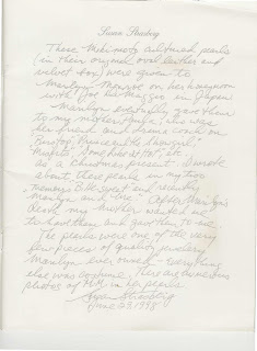 Susan Strasberg sold the necklace in 1998, and the letter below about the necklace is in her own handwriting. It’s dated June 29, 1998. Sadly, Strasberg died January 29 of the following year.