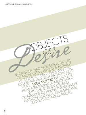 I was recently interviewed for a feature article in Jumeirah magazine. The article, “Objects Of Desire,” focuses on collecting Marilyn Monroe memorabilia.Fellow collector David Gainsborough Roberts was also interviewed, along with Darren Julien of Julien’s Auctions, Margaret Barrett of Bonhams and Butterfields, and Katherine Williams from Christie’s.