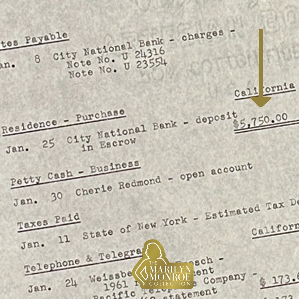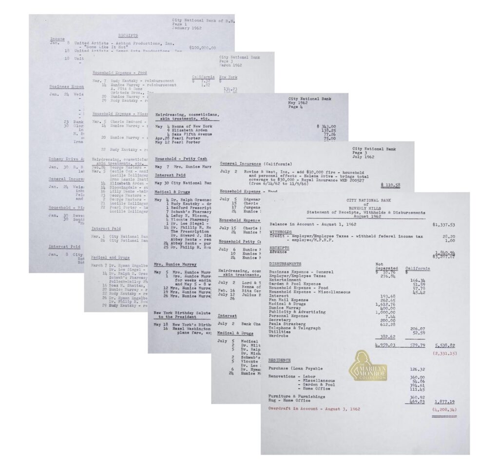 On a personal note, I own Marilyn Monroe’s personal financial records covering January through August 1962.